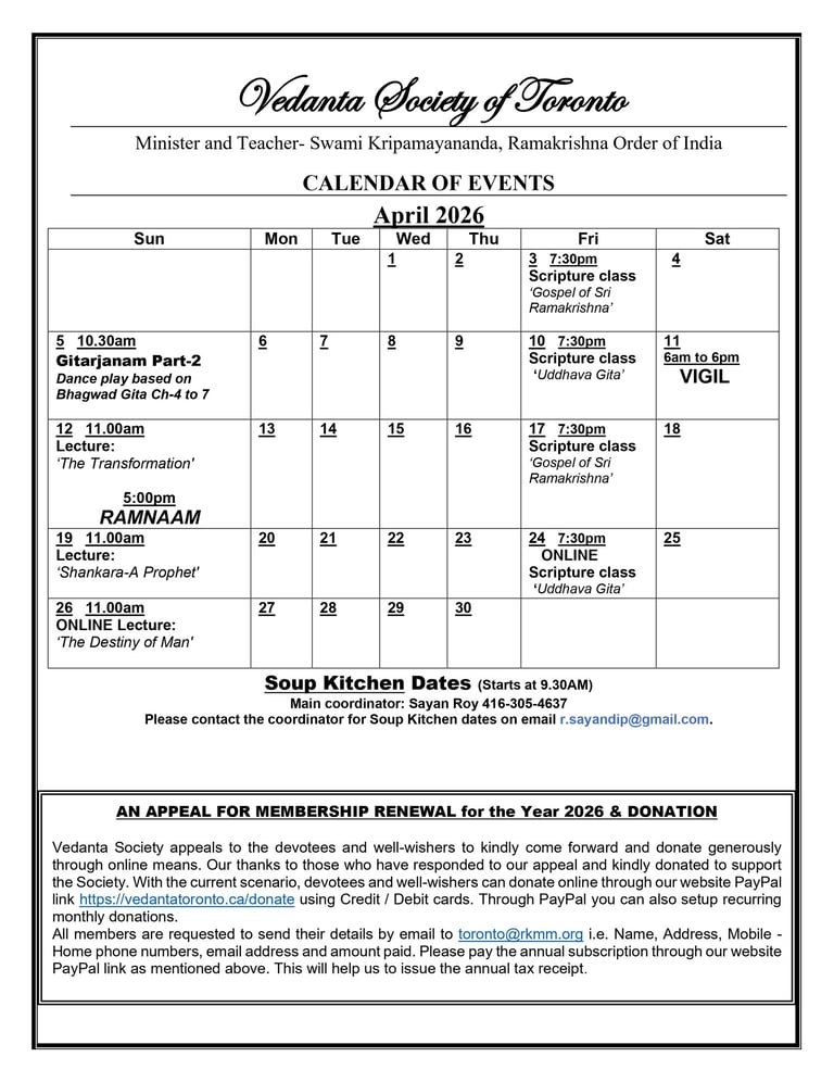 Copyright © 2023 By Vedanta Society of Toronto. All Rights Reserved.